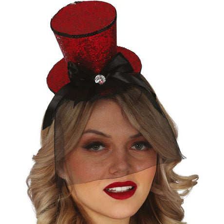 €2,80Precio unitario /AgotadoMini sombrero rojo con brillante y velo