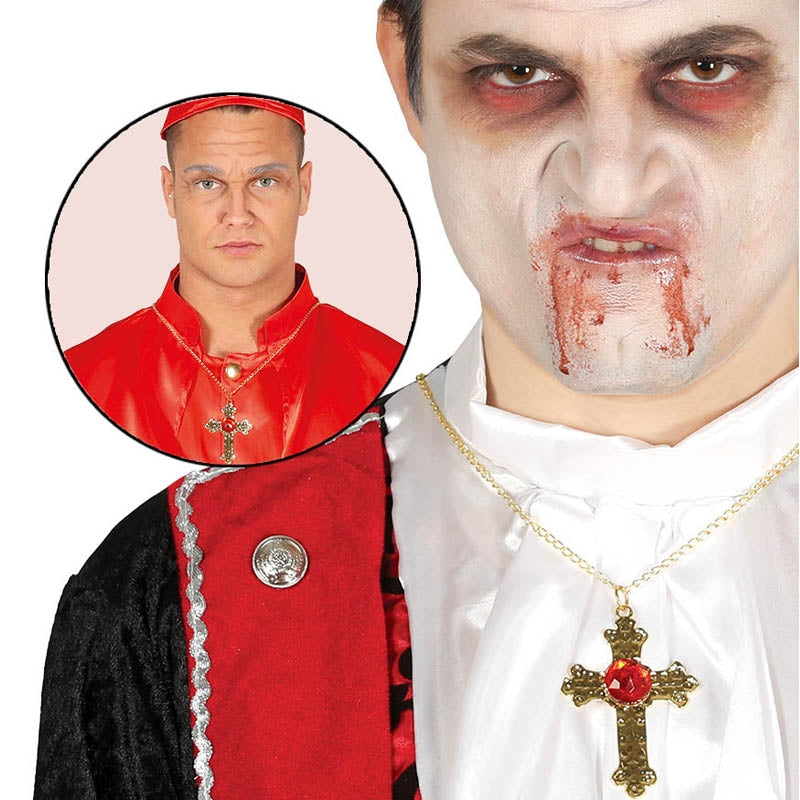 Utiliza este nuevo Colgante Cruz Dorada para caracterizar los disfraces malvados de Halloween | Colgante con Cruz Dorada de 7 cm para dar el toque final a tu look Halloween