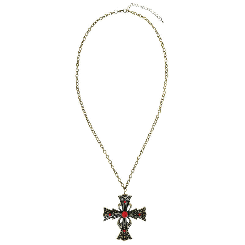 Original Collar cruz con rubí para disfrazarte durante Halloween o cualquier fiesta temática de terror | collar con cruz gótica con pedrería será el toque original perfecto para completar tu disfraz de Halloween de forma llamativa y oscura en cualquier evento de miedo