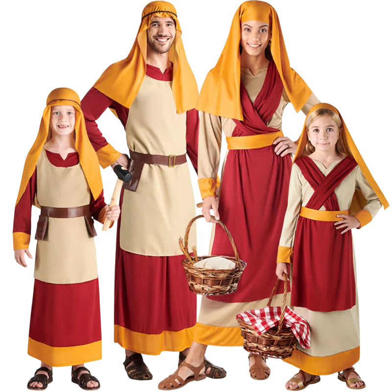 Fantástica idea para disfrazar a toda la familia de Hebreos Portal de Belén con diseños a juego para hombre, mujer, niño y niña. Puedes acceder al contenido de cada disfraz más abajo en el apartado de “Completa tu look”, donde figura cada disfraz que pertenece a este grupo de forma individual.