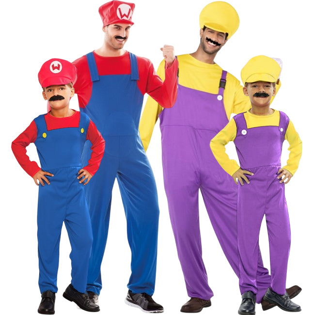 Fantástica idea para disfrazar a todo el grupo de Súper Marios y Warios con diseños a juego para adultos y niños.