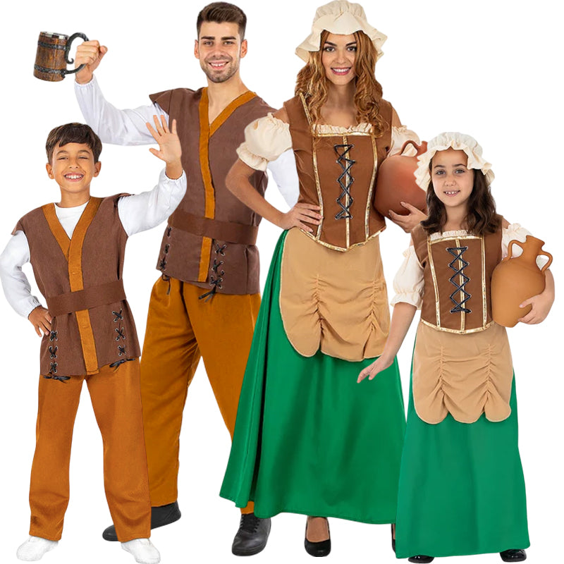Fantástica idea para disfrazar a toda la familia de Taberneros del Medievo con diseños a juego para hombre, mujer, niño y niña. Puedes acceder al contenido de cada disfraz más abajo en el apartado de “Completa tu look”, donde figura cada disfraz que pertenece a este grupo de forma individual.