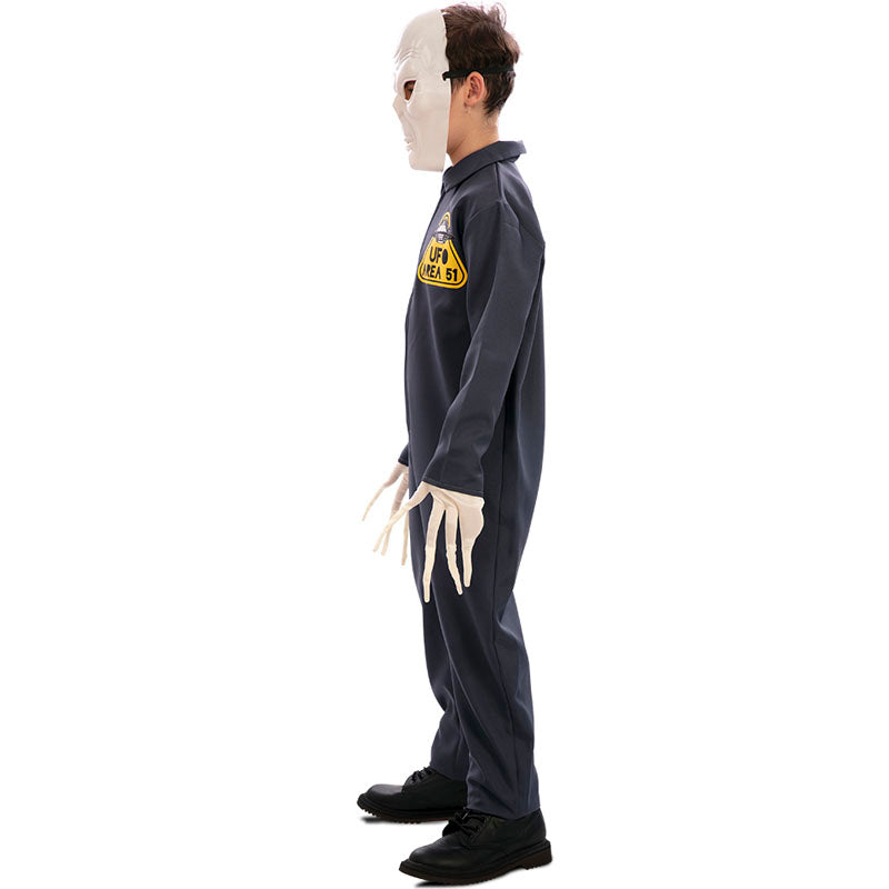 El disfraz original de Alien Area 51 para niños incluye: mono, guantes, máscara | Este traje de niño imitando un Extraterrestre del Área 51 está disponible en 2 tallas distintas