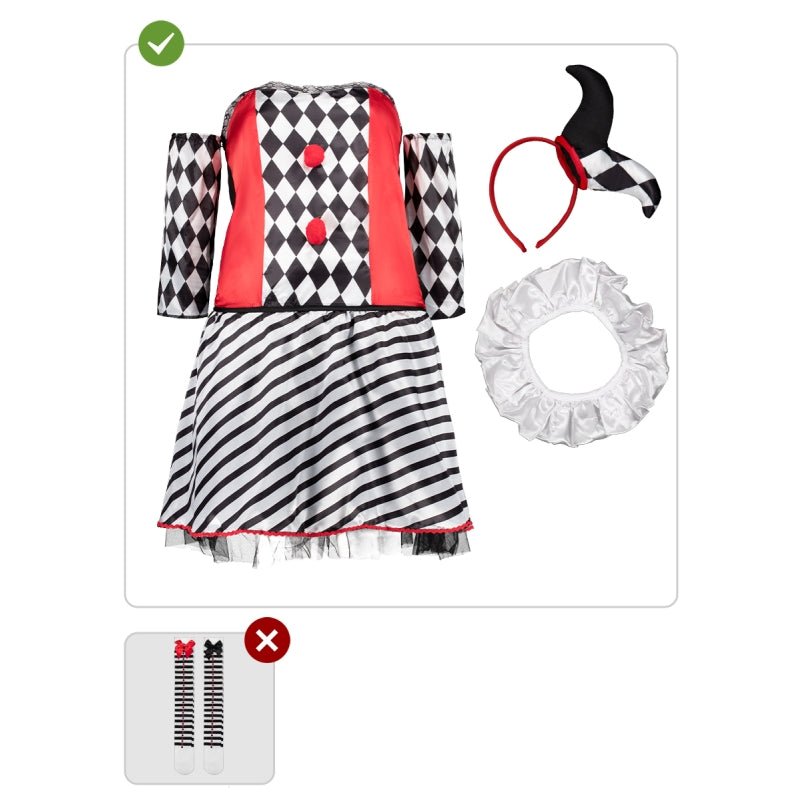 Este exclusivo disfraz de Arlequín Sexy para mujeres contiene: Vestido, muñequeras, cuello y diadema, ten en cuenta que no incluye:medias | Este traje de mujer para transformarte en payaso teatral con actitud seductora está disponible en 6 tallas distintas