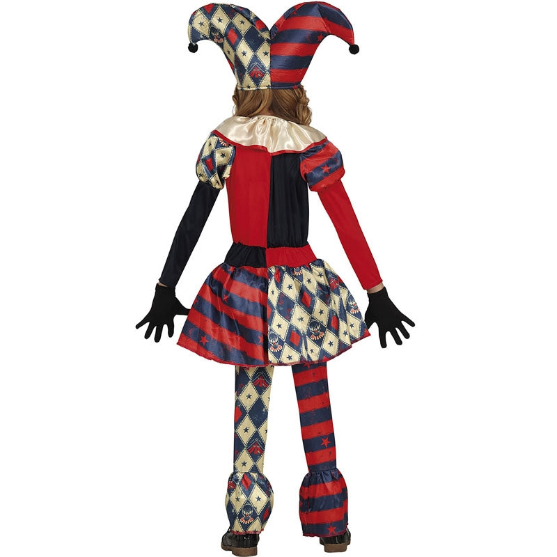 Dentro de nuestro terrorífico ideas para el disfraz de Halloween venimos de incorporar un nuevo disfraz terror para niñas con el que convertir a tu hija en una sobrecogedora Arlequín terror de forma rápida usando este traje de Halloween para niñas. No dejes pasar la oportunidad de disfrazarla como una bufona del Circo de los horrores con este disfraz de Halloween femenino infantil que contiene camiseta, pantalón, gorro y accesorio para el cuello y está disponible en 3 tallas diferentes. Este nuevo traje Arlequín terror de niña es ideal para espantar de miedo a todo el mundo en su próxima fiesta de disfraces aterradores, un desfile de miedo en el cole o la academia de inglés, un paseo pidiendo caramelos...y forma parte de nuestra extensa selección de disfraces de Halloween para niña. Compra este original disfraz de Arlequín terror niña para Halloween con el que transformarla la noche más oscura del año y conseguirás que tu hija se lo pase de miedo. No te olvides de dar el toque final a tu disfraz de arlequina a rombos de color dorado, azul y rojo para niña con un maquillaje de miedo a la altura de su personaje y añadir accesorios de Halloween para personalizar al máximo tu look terror.