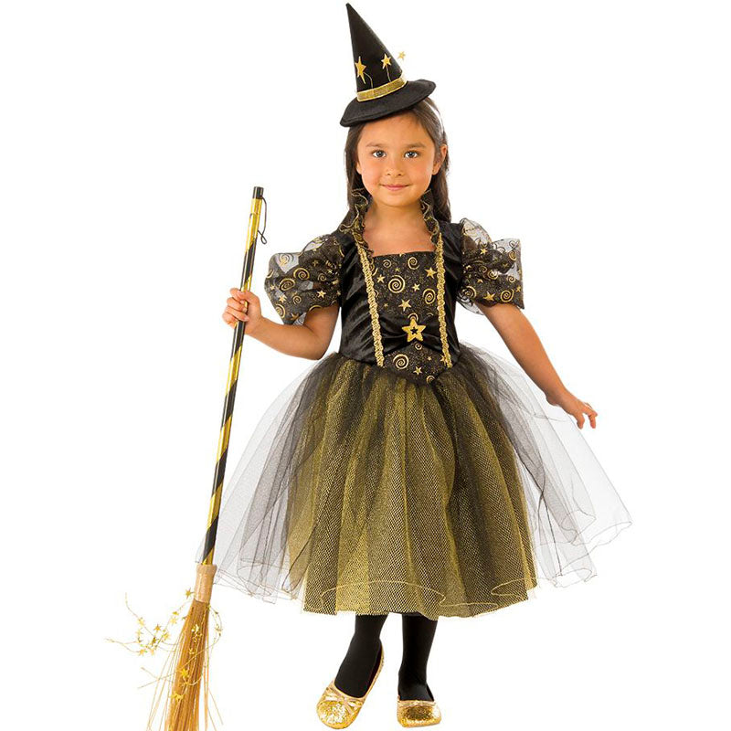 El disfraz Halloween de Bruja Estrellitas para niñas incluye: vestido y gorro | Este traje terrorífico de niña imitando a una bruja llena de estrellas está disponible en 3 tallas distintas