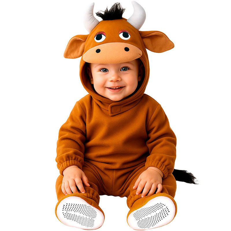 Haz que tu bebé viva su primer carnaval de forma especial y divertida con este disfraz de buey marrón para bebé, y guarda un recuerdo lleno de ternura y alegría. Elige originalidad y comodidad: tu peque será el centro de todas las fotos y risas.