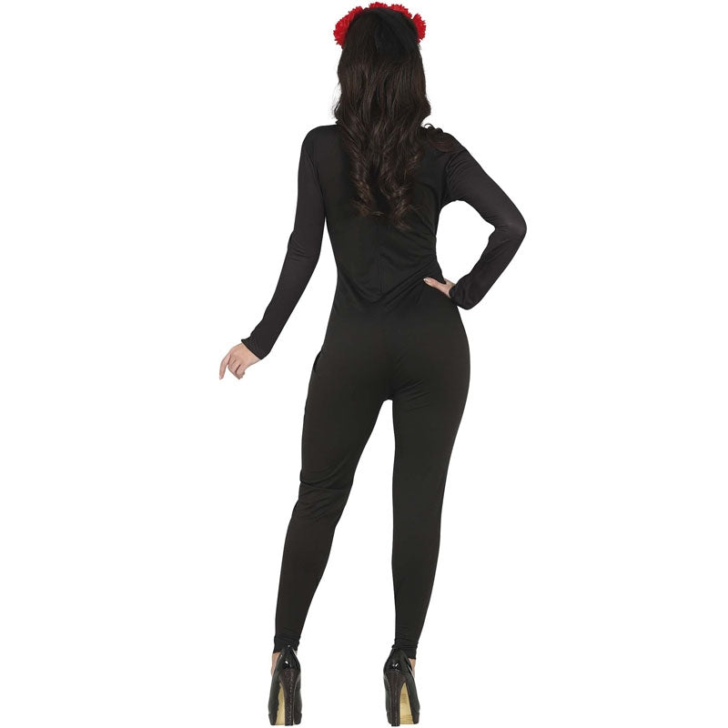 El disfraz Halloween de calavera Catrina para mujeres contiene: Mono | Este traje aterrador de mujer para transformarte en Catrina con lazos está disponible en 3 tallas distintas
