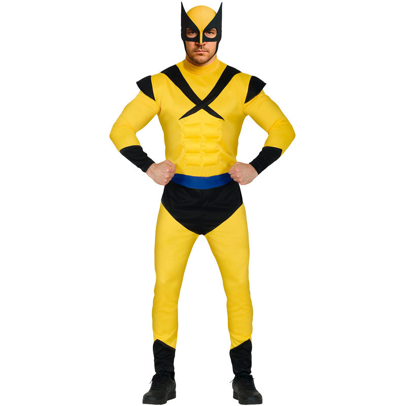 Conviértete en el mutante con huesos de metal, garras, y la capacidad de curarse a sí mismo. El nuevo disfraz de Lobezno está un traje acolchado y la máscara. El mono es de color amarillo con detalles azules con rellena en el torso y los brazos para que te veas musculoso y muy fuerte. La máscara es de color azul y amarillo y cubre la mitad superior de la cara. Lobezno, también conocido como Logan, era un mutante con la capacidad de curarse a sí mismo. El ejército de los Estados Unidos infundió sus huesos con adamantium, dándole una gran resistencia y durabilidad. Logan vive en un mundo lleno de mutantes con poderes extraños, pero utiliza su fuerza y conocimientos de lucha por el bien.