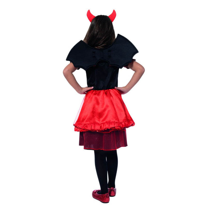 El disfraz Halloween de Diablesa con alas negras para niñas incluye: vestido, alas y diadema | Este traje terrorífico de niña imitando a una demonia con alas negras está disponible en 4 tallas distintas