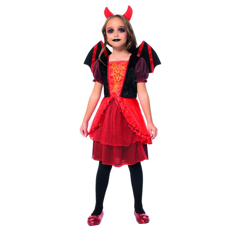 Dentro de nuestro terrorífico ideas para el disfraz de Halloween venimos de incorporar un nuevo disfraz terror para niñas con el que convertir a tu hija en una sobrecogedora Diablesa con alas negras de forma rápida usando este traje de Halloween para niñas. No dejes pasar la oportunidad de disfrazarla como una demonia con alas negras con este disfraz de Halloween femenino infantil que contiene vestido, alas y diadema y está disponible en 4 tallas diferentes. Este nuevo traje Diablesa con alas negras de niña es ideal para espantar de miedo a todo el mundo en su próxima fiesta de disfraces aterradores, un desfile de miedo en el cole o la academia de inglés, un paseo pidiendo caramelos...y forma parte de nuestra extensa selección de disfraces de Halloween para niña. Compra este original disfraz de Diablesa con alas negras niña para Halloween con el que transformarla la noche más oscura del año y conseguirás que tu hija se lo pase de miedo. No te olvides de dar el toque final a tu disfraz de diablesa con alas oscuras para niña con un maquillaje de miedo a la altura de su personaje y añadir accesorios de Halloween para personalizar al máximo tu look terror.