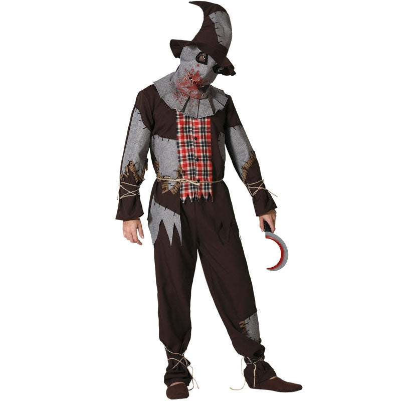 El 31 de octubre a la vuelta de la esquina y ¿aún andas buscando ideas para el disfraz de Halloween? Conviértete en un aterrador Espantapájaros sangriento de forma sencilla comprando este nuevo traje de Halloween para hombres. Será imposible pasar desapercibido disfrazándote como un muñeco espantapájaros oscuro con este disfraz de Halloween masculino talla adulto que contiene camiseta, pantalón, cinturón, gorro y capucha está disponible en 2 tallas. Este nuevo traje muñeco espantapájaros oscuro de hombre es ideal para sembrar el terror en tu próxima fiesta de disfraces terror y forma parte de nuestro extenso catálogo de disfraces de Halloween para hombre. Compra este original disfraz de Espantapájaros sangriento hombre para Halloween con el que transformarte la noche más oscura del año y conseguirás estar de miedo. No te olvides de dar el toque final a tu disfraz de Espantapájaros sangriento para hombre con un maquillaje de miedo a la altura de tu personaje y añadir accesorios de Halloween para personalizar al máximo tu look terror.
