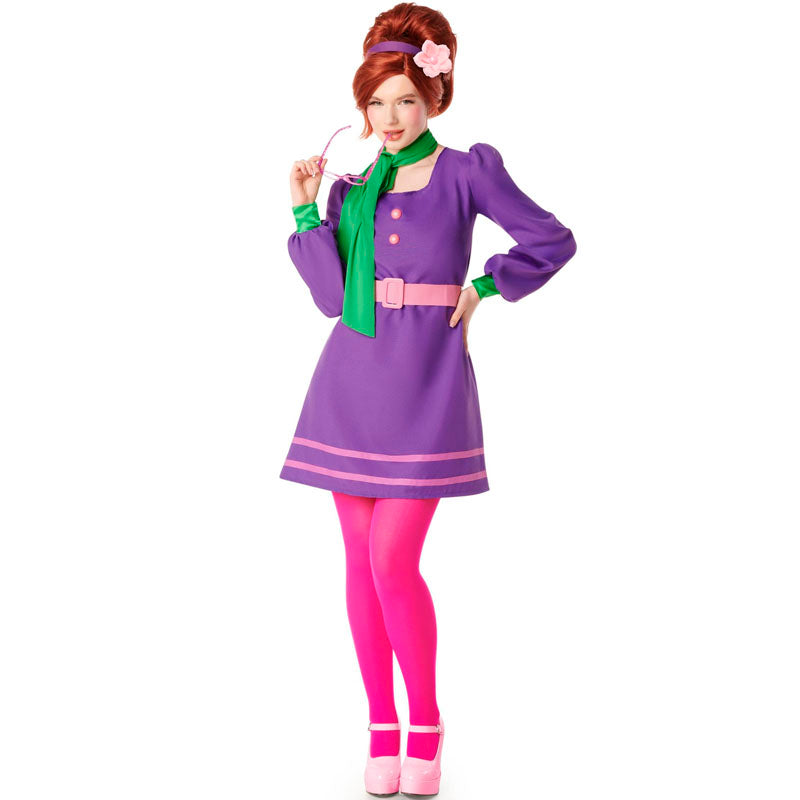 El disfraz original de Espía Austin Powers para mujeres contiene: diadema, pañuelo, vestido, cinturón y medias | Este traje de mujer para transformarte en agente secreta psicodélica está disponible en 4 tallas distintas