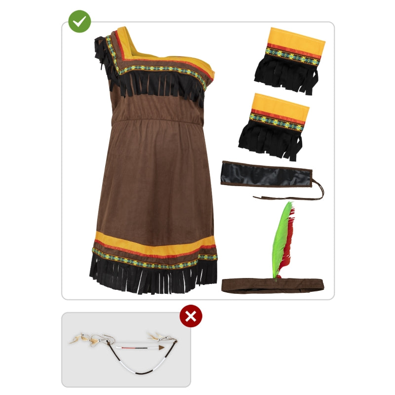 Este exclusivo disfraz de India Sexy Deluxe para mujeres contiene: Vestido, cinturón, brazaletes y cinta para el pelo con pluma, ten en cuenta que no incluye:Arco con flecha | Este traje de mujer para transformarte en nativa de leyenda con estilo sofisticado está disponible en 5 tallas distintas
