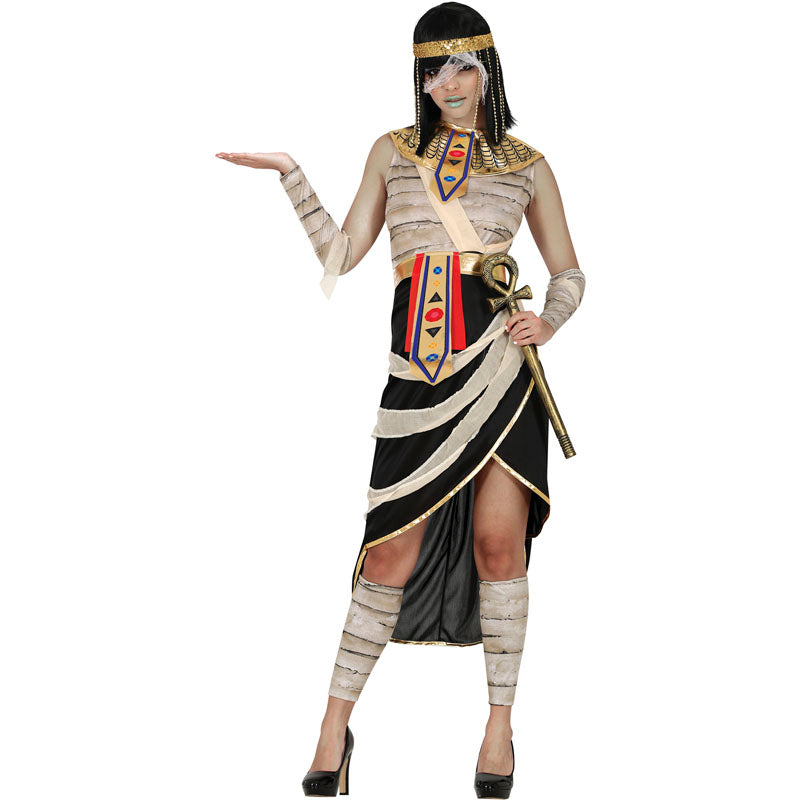 El disfraz Halloween de Momia Egipcia para mujer incluye: vestido, calentadores, cinturón, cuello y mangas | Este traje aterrador de mujer para transformarte en Momia de la reina Nefertari está disponible en 2 tallas distintas