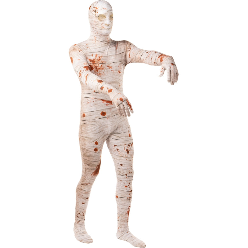 Disfraz de Momia Ensangrentada para adulto con mono completo de segunda piel y apertura trasera. Disponible en 5 tallas. Realista, cómodo y perfecto para Halloween.