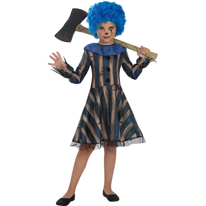 El disfraz original de Payasa terrorífica para niñas incluye: Vestido | Este traje de niña imitando a Payasa diabólica y terrorífica está disponible en 4 tallas diferentes