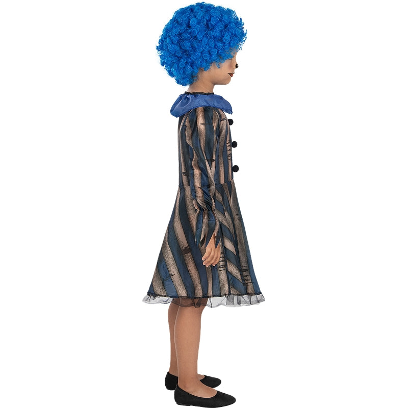 La luna llena ya se asoma y en la bruma se escucha una risa inquietante… Esta vez la protagonista no es un monstruo cualquiera, sino una niña valiente que ha decidido disfrazarse de payasa terrorífica. Al cruzar la puerta, todos giran la cabeza: su vestido lleva los colores y rayas del mismísimo circo de los sustos. Cada paso que das será la sensación en cualquier fiesta de disfraces, porque si buscas destacar y no pasar desapercibida, el disfraz de payasa terrorífica es la elección perfecta para triunfar en Halloween. Descubre más ideas para la noche más oscura en nuestra colección de disfraces de Halloween.