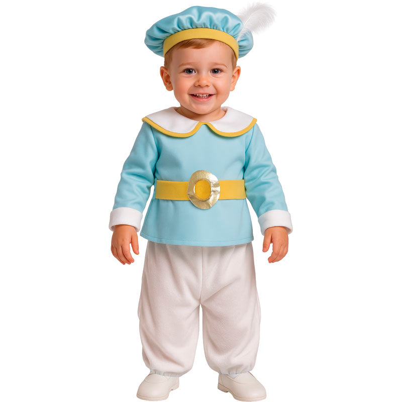 Nos hemos preocupado de contar con lo necesario para convertir a vuestro bebé en Príncipe de forma superoriginal y adorable con este simpático disfraz para bebés. Si quieres hacer unas fotos graciosas para el recuerdo, o asistir a su primera fiesta temática disfrazado de Príncipe de cuento con este nuevo fiesta de Carnaval para bebé seguro que no pasará desapercibido. Compuesto por camisa con cinturón, pantalón, botas y gorro y disponible en 2 tallas diferentes para acoplarnos a los más pequeños de la casa. Seguro que la idea del nuevo disfraz de Príncipe de bebé le permitirá dejar a todo el mundo boquiabierto en su primera fiesta de Carnaval, una sesión de fotos, espectáculos de fin de curso en la guardería o simplemente yendo a juego con sus papás imitando el look de Príncipe Encantado de forma realista. Compra este original traje de Príncipe bebé cómodamente desde casa en nuestra tienda online.