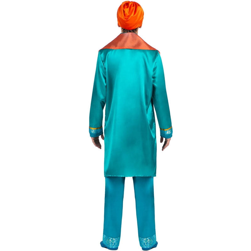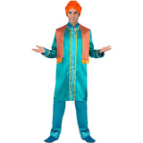 El nuevo disfraz de Rey Hindú azul para hombres contiene: camisa, pantalón, bufanda y turbante | Este traje de hombre imitando a Rey de Bollywood está disponible en 3 tallas distintas