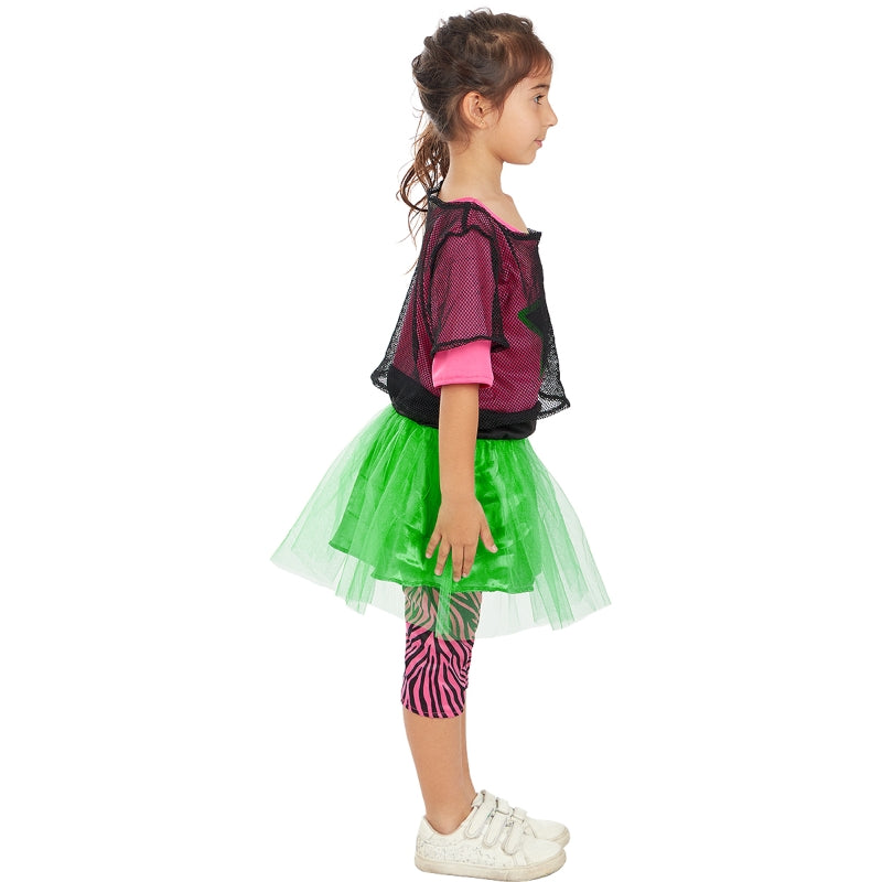 El disfraz original de Rockera para niñas incluye: Vestido, camiseta de rejilla y leggins | Este traje de niña imitando a una Chica rockera con estilo está disponible en 3 tallas diferentes