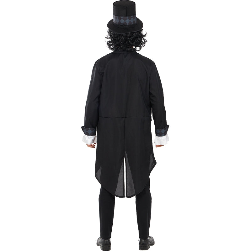 El disfraz Halloween de Sombrerero Loco Oscuro para hombre incluye: Chaqueta con chaleco adjunto, pajarita y sombrero | Este traje terrorífico de hombre imitando a un anfitrión macabro del té en el país de las pesadillas está disponible en 5 tallas distintas