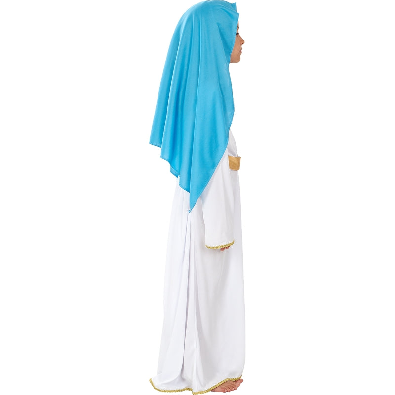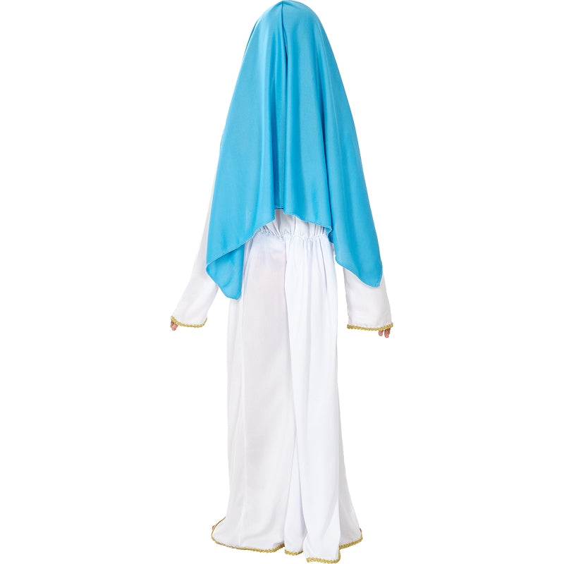 El disfraz original de Virgen María para niñas incluye: Vestido y pañuelo para la cabeza | Este traje de niña imitando a Virgen María con velo y manto está disponible en 4 tallas diferentes