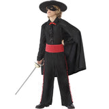 El disfraz del Zorro incluye: Camisa, pantalón, cinturón y capa.