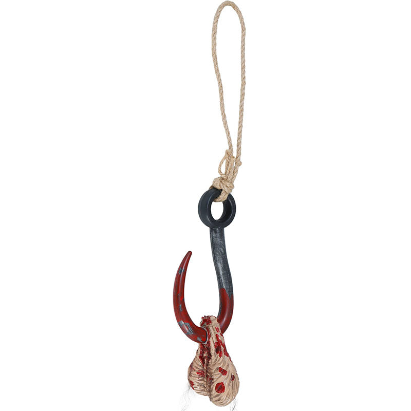 - Gancho ensangrentado con realista detalle anatómico simulando testículos
