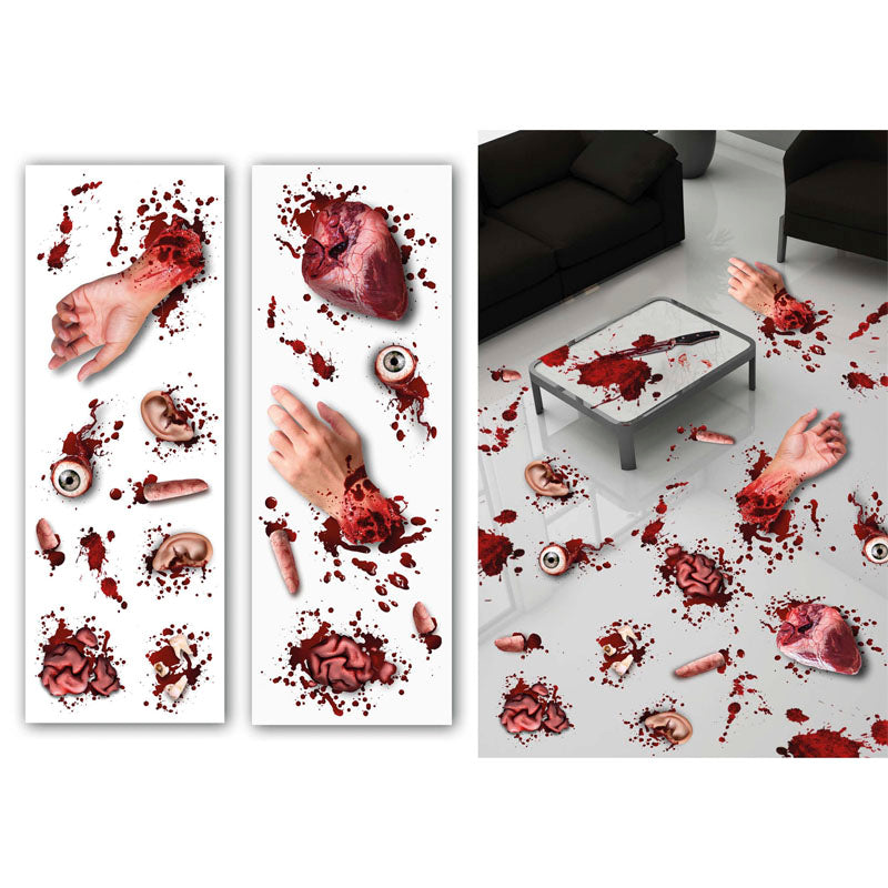 Cada hoja incluye brazos cortados, orejas, dedos, cerebros, corazones, ojos y otros órganos ensangrentados que parecen recién arrancados de una película de terror. Su diseño hiperrealista con manchas de sangre añadirá un efecto gore increíble en paredes, puertas, ventanas o incluso muebles.