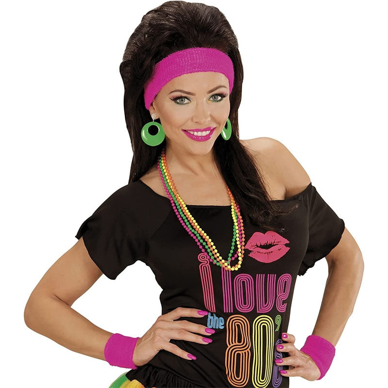 Kit gimnasta rosa de los años 80 es el toque original perfecto para completar tu disfraz de forma llamativa y colorida en cualquier evento de disfraces, Carnaval o fiesta temática | Contiene banda para la cabeza y 2 muñequeras