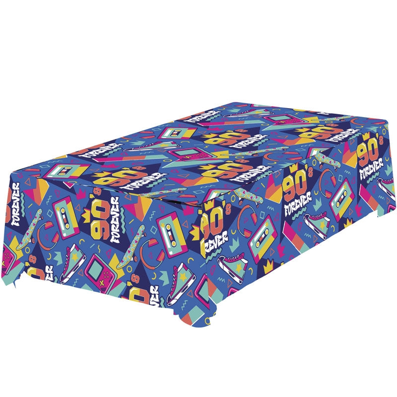 Ya sea que estés organizando una fiesta de cumpleaños, una reunión temática o simplemente quieras revivir los recuerdos de esa década mágica, este mantel es la elección ideal. Combínalo con otros elementos decorativos de los 90, como globos de colores, guirnaldas y carteles, y crea un ambiente único y lleno de alegría.