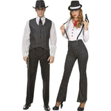 El disfraz de Gánster en la serie peaky Blinders para hombres incluye: camisa, corbata, chaleco y pantalón, mientras que el disfraz de Gánster años 20 para mujeres contiene: camiseta, pantalón, corbata y tirantes.