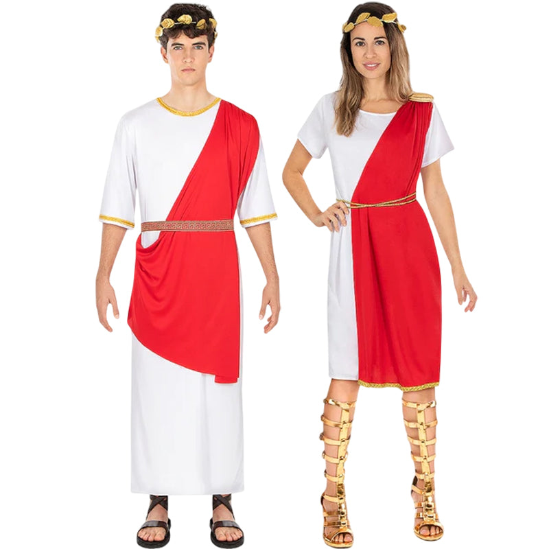 El disfraz de Romano para hombres incluye: Túnica con estola y cinturón, mientras que el disfraz de Romana Corto para mujeres contiene: Túnica con estola y cinturón.